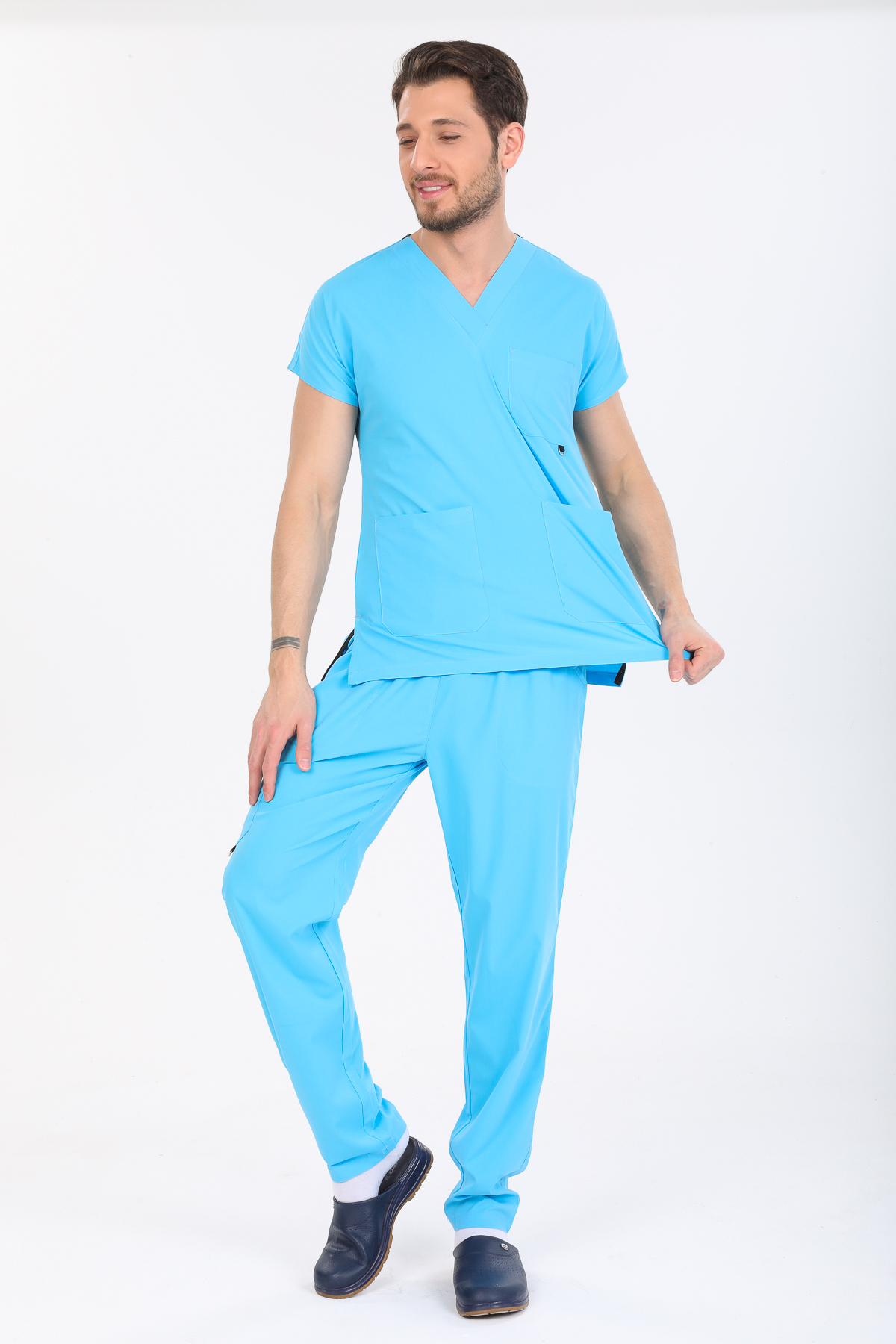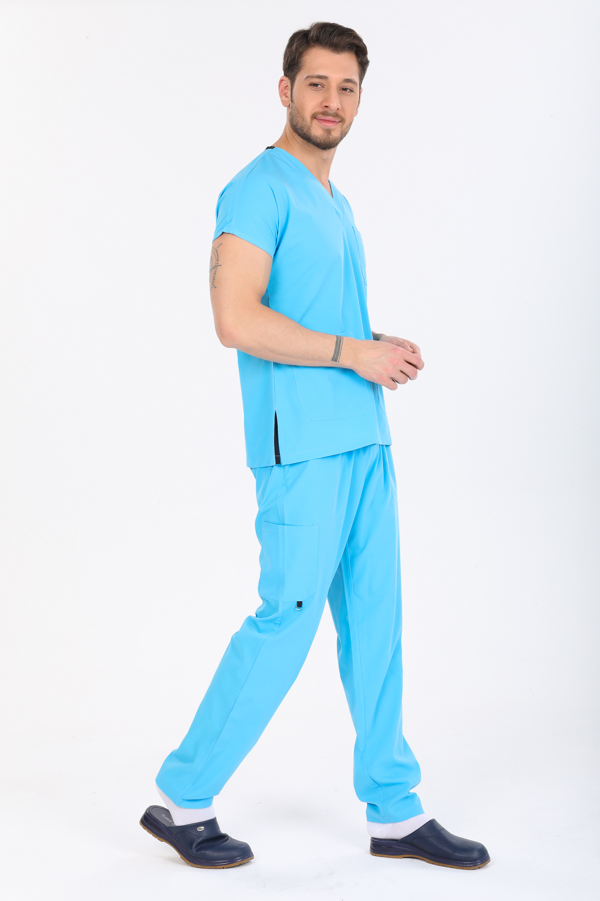 • Ürünün hem bayan hem de erkekler için üretimi yapılmaktadır. V Cerrahi yaka takımların genel kullanım alanı doktor, hemşire, anestezi teknisyenleri, ebeler , veterinerler diğer sağlık personelleri olsa da endüstriyel işçi kıyafeti ve aşçı kıyafeti olarak da kullanılabilmektedir.