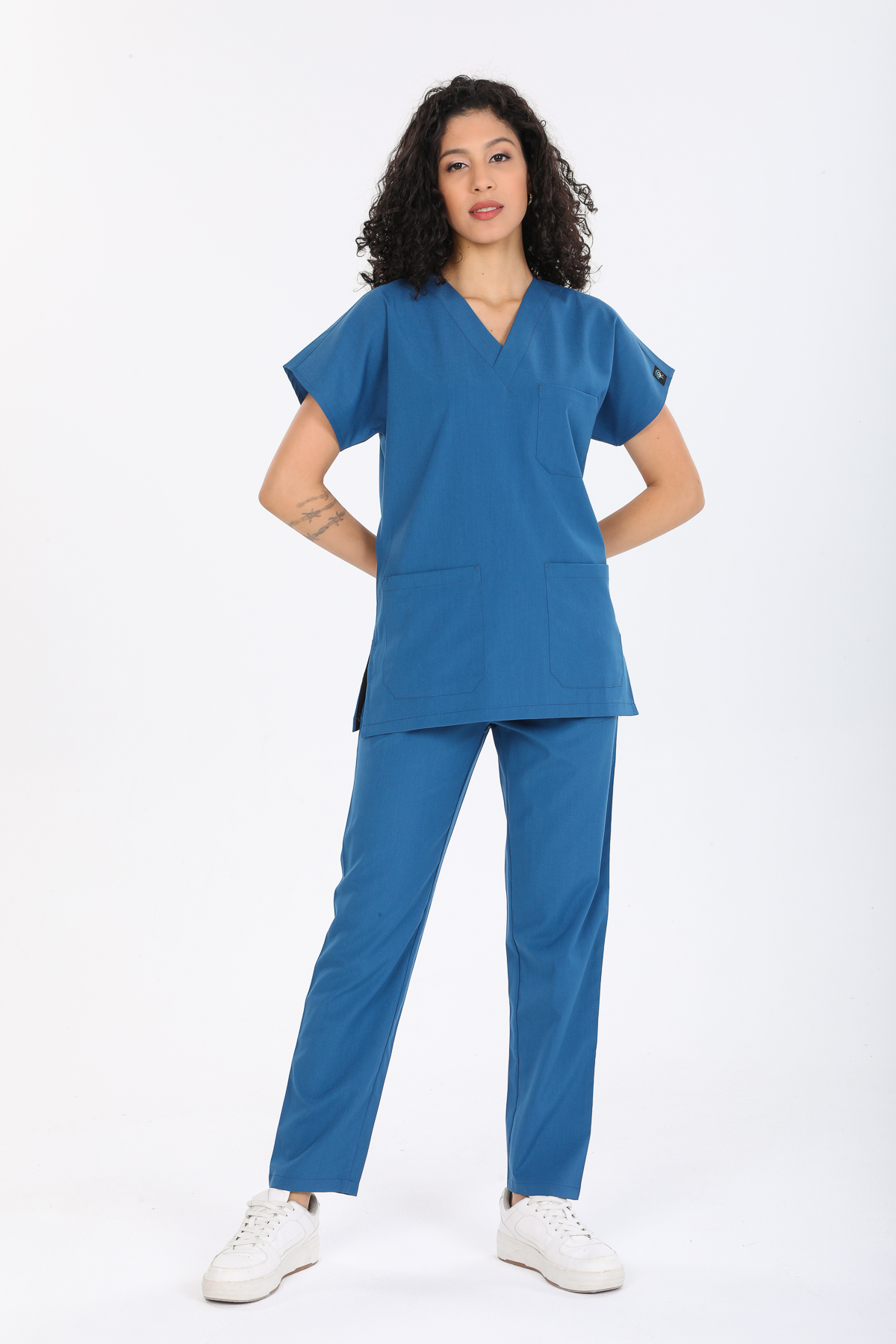 • V Cerrahi Yaka takımın kumaşının ince olması kapalı birimlerde ve yaz aylarında daha çok tercih edilmesini sağlamaktadır.
