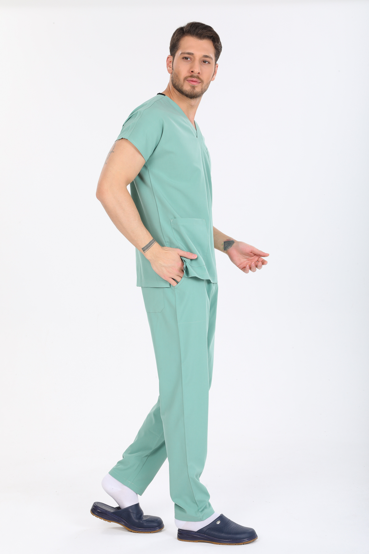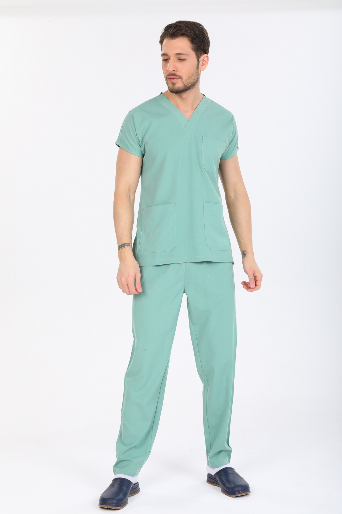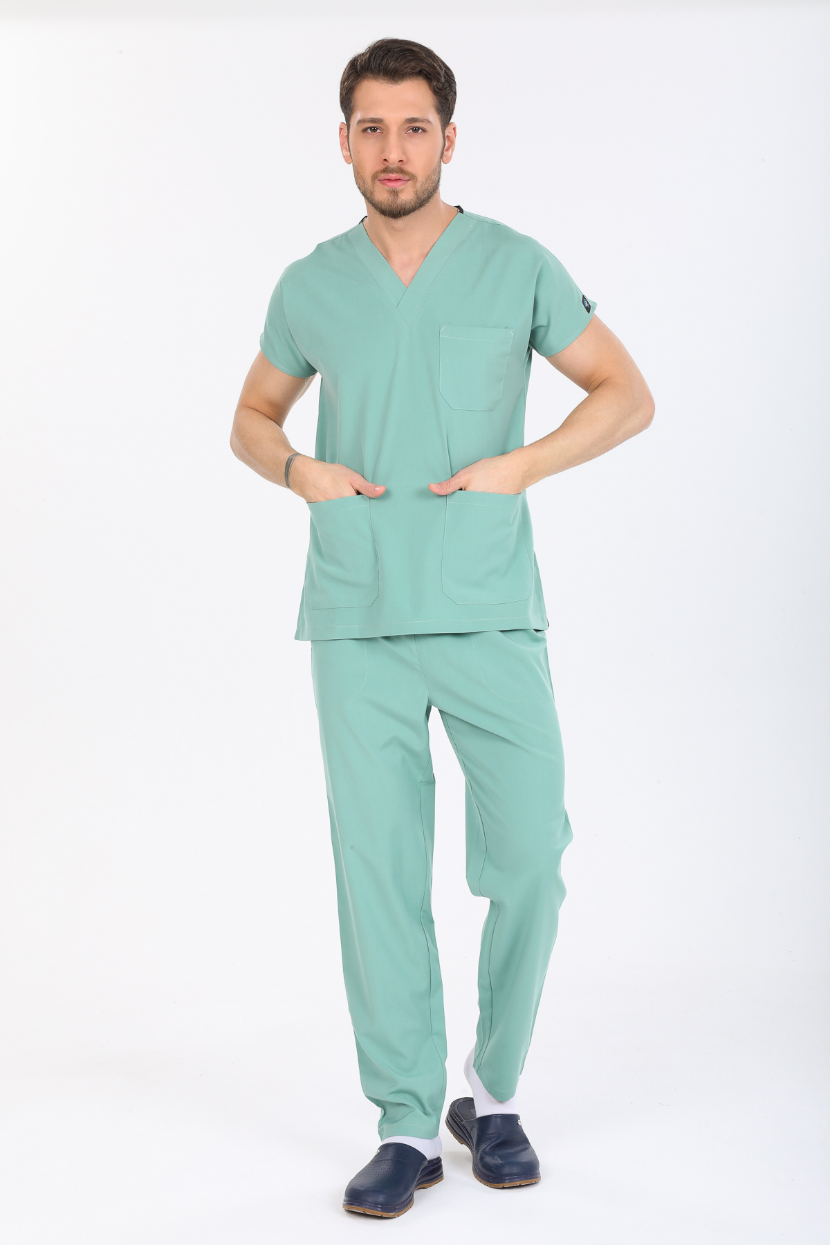 • Ürünün hem bayan hem de erkekler için üretimi yapılmaktadır. V Cerrahi yaka takımların genel kullanım alanı doktor, hemşire, anestezi teknisyenleri, ebeler , veterinerler diğer sağlık personelleri olsa da endüstriyel işçi kıyafeti ve aşçı kıyafeti olarak da kullanılabilmektedir.