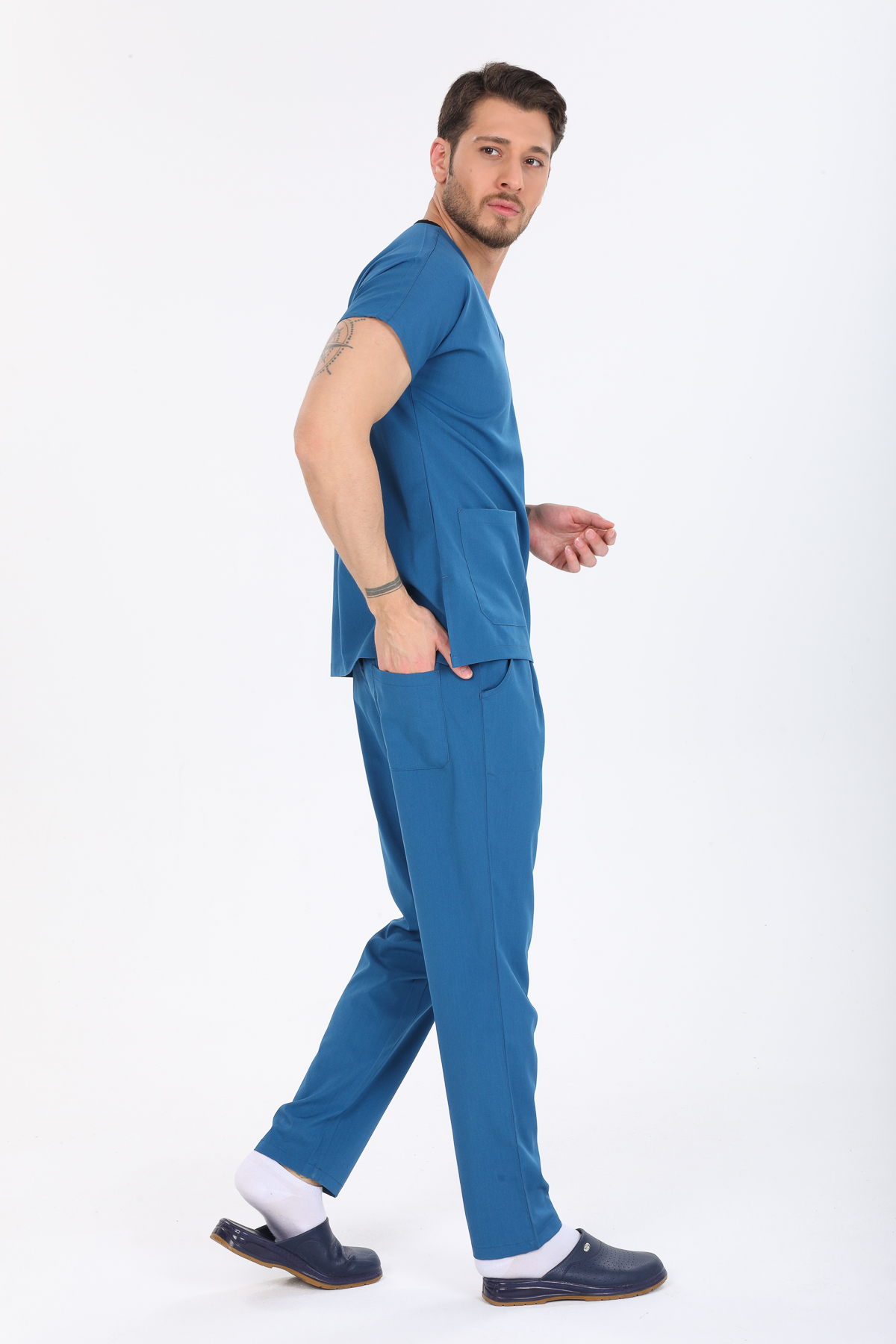• Ürünün hem bayan hem de erkekler için üretimi yapılmaktadır. V Cerrahi yaka takımların genel kullanım alanı doktor, hemşire, anestezi teknisyenleri, ebeler , veterinerler diğer sağlık personelleri olsa da endüstriyel işçi kıyafeti ve aşçı kıyafeti olarak da kullanılabilmektedir.