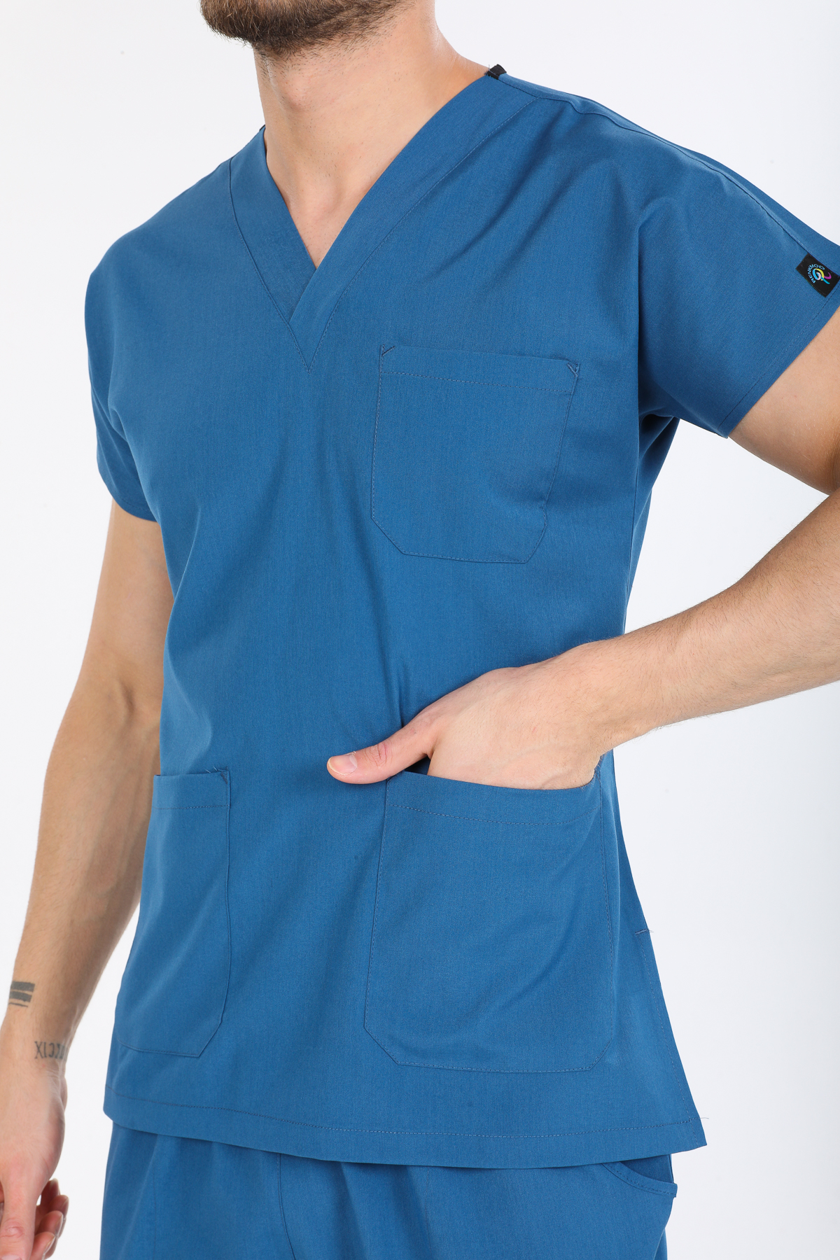 • V Cerrahi Yaka takımın kumaşının ince olması kapalı birimlerde ve yaz aylarında daha çok tercih edilmesini sağlamaktadır.