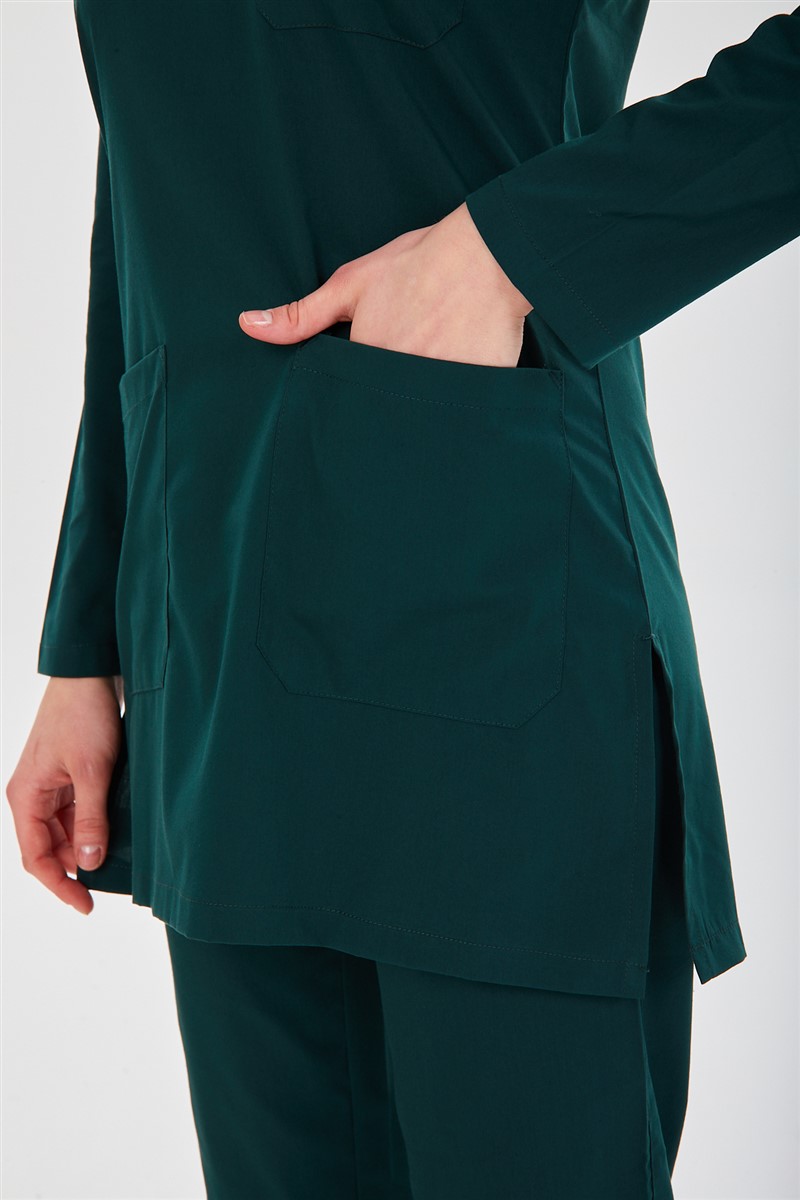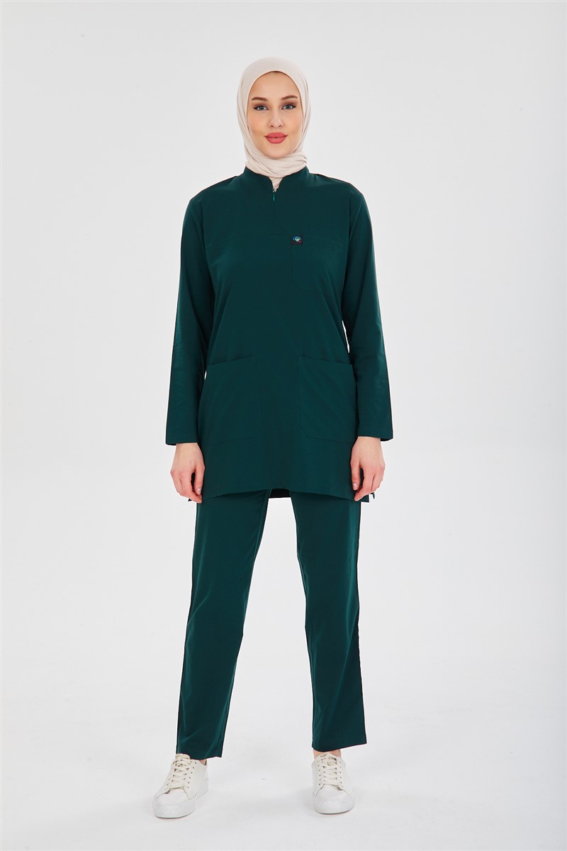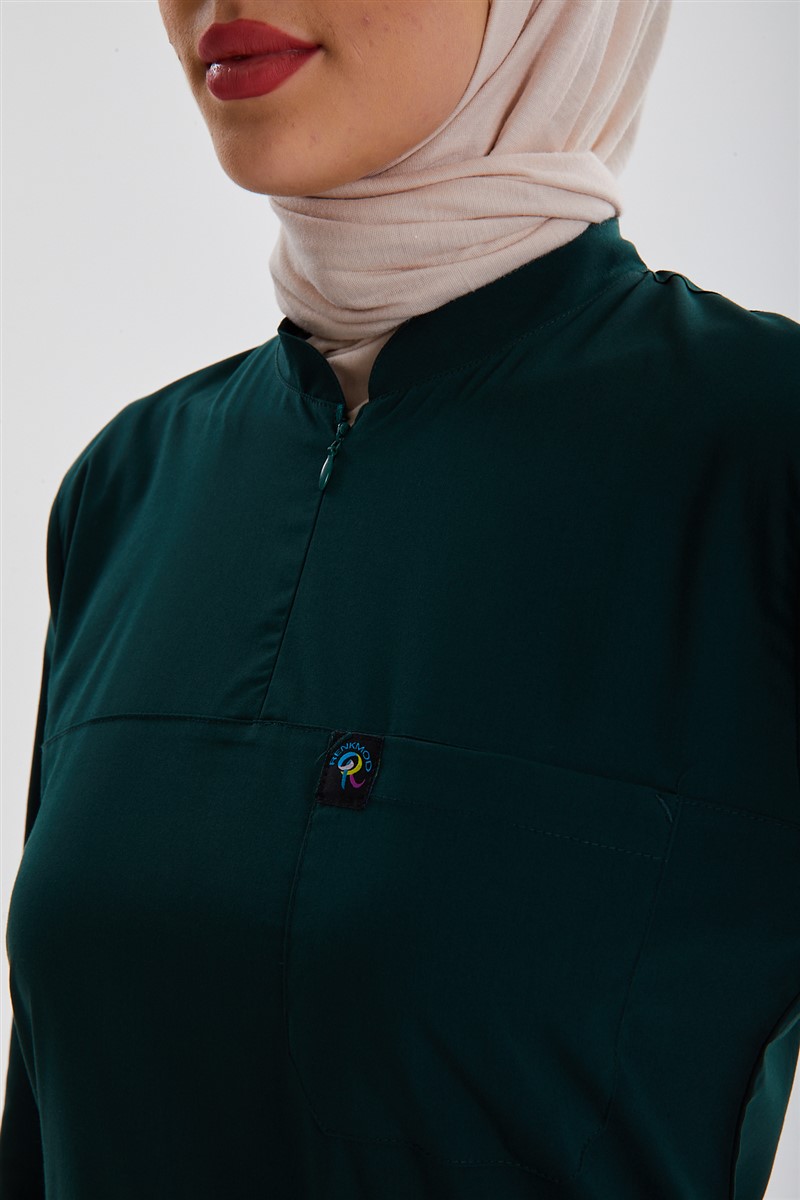 • Hakim Yaka gizli fermuarlı TESETTÜR takımın kumaşının ince olması kapalı birimlerde ve yaz aylarında daha çok tercih edilmesini sağlamaktadır.